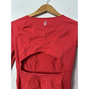Free People Movement Red Good Karma L Sleeve Jumpsuit Bodysuit Thumbholes XS/S