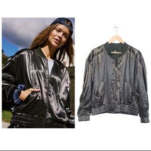Free People Movement Relay Zip Up Satin Knit Collared Jacket