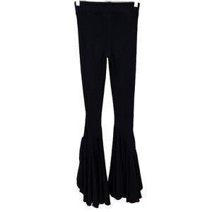 Free People Movement Flared Ruffle Pants Black High Waisted High Rise Ribbed Knit Split Hem Elastic Waist Stretch Women’s