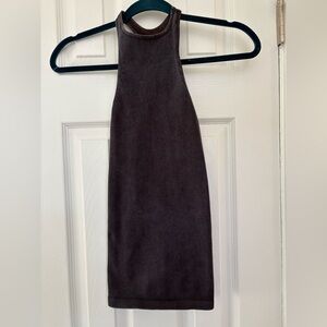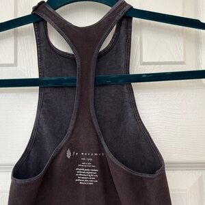 Free People Movement ribbed racerback tank in a rich charcoal / deep brown tone. Soft, stretchy fabric with a flattering longline fit—perfect for yoga, workouts, layering, or everyday athleisure wear.