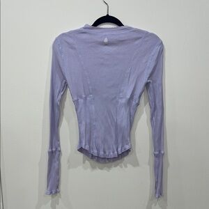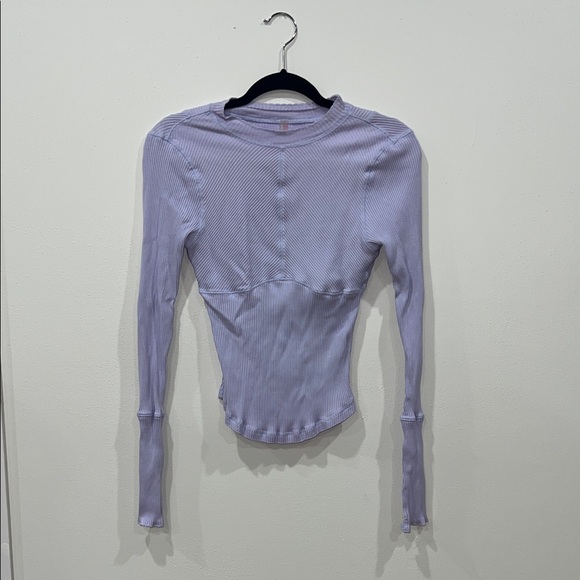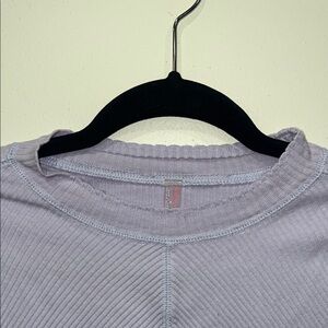 Elevate your wardrobe with this lavender long sleeve ribbed top. Perfect for any occasion, this top offers both style and comfort. Preloved, some threads coming loose, price reflects.