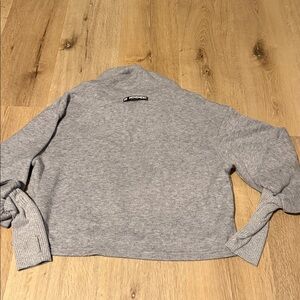 Features: Textured jersey fabrication; slouchy cowl mock neck; boxy pullover silhouette; relaxed long sleeves; ultra-long, ribbed sleeve cuffs; thumbhole details; flowy, slightly cropped hem; buti logo at hip; branded tag at back.