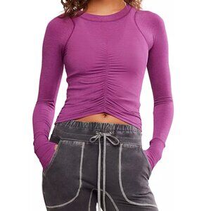 The Free People Movement Right On Run Long Sleeve Layer in black, size L, is a versatile and comfortable activewear top suitable for various occasions such as gym workouts and yoga sessions. Made from a blended fabric with a medium wash, this pullover top features a solid pattern and long sleeves, making it perfect for the winter, fall, and spring seasons. With a stretchy material and athletic fit, this basic style from Free People offers both style and functionality for women on the go. Machine washable for easy care, this top is a must-have for any active woman's wardrobe.