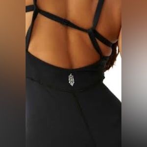 This sleek and sporty romper is designed with a strappy cutout back for easy movement.