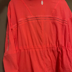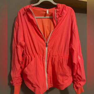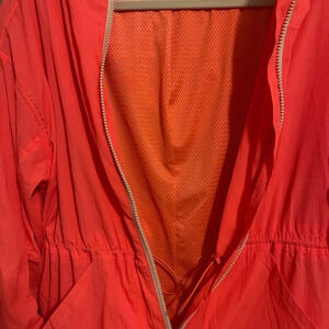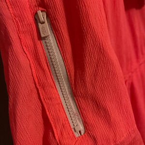 Hot coral color with gray zip Two-way front zipper Cinched sleeves