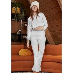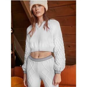 Free People Movement Snowfall White Cropped Cable Knit Sweater Pant Set S