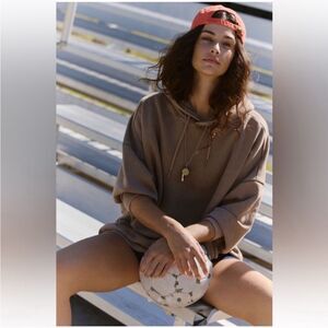 Free People Movement Sprint To The Finish Hoodie FP Sweatshirt Hickory Large NEW