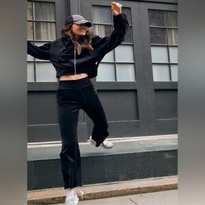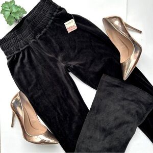 Free People Movement Take the Lead Velour Velvet Flare Pants Size XS Black NWT
