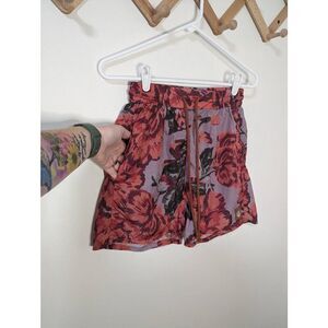 Free People Movement The Switchback Shorts Hibiscus Print Drawstring Waist Sz XS