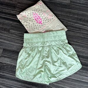 Size medium. Light green in color. Speed up or slow down in these breezy, warm-up style shorts. Featuring a boldly smocked waistband with a high-rise silhouette. NWOT