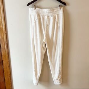 Excellent condition- no flaws, brushed sail white color. High rise drawstring waist. Soft knit joggers. Side pockets.