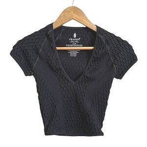 Keywords: Free People Movement, Athletic Top, Crop Top, Textured Top, Black Top, V Neck Top, Short Sleeve Top, Workout Top, Yoga Top, Activewear, Medium Large, FP Movement