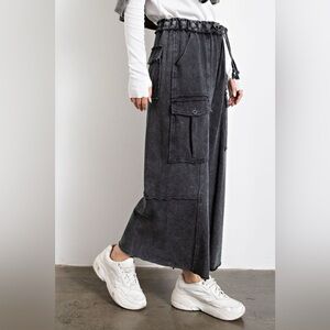 Elevate your wardrobe with this chic black cargo skirt. Perfect for casual outings or a trendy look.