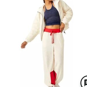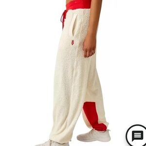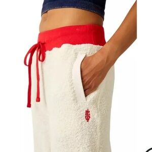 FIT & DESIGN: Relaxed fit; pull-on style Super soft fabrication; fuzzy, cozy feel High-waisted Adjustable draw cord waistband Nylon accents at bottom leg Front and back pockets