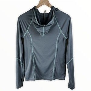 Free People Movement Womens Gray Teal Lined Hooded Half Zip Top Size Small