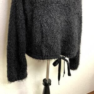 Free People Movement black fuzzy cowl neck drawstring hem sweater size M / L