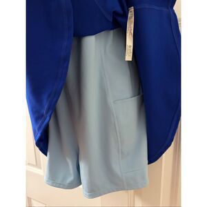 Features: Peek-a-boo detail at neckline; shortsie lining; adjustable shoulder straps; cutout detail at back; seaming at skirt;
