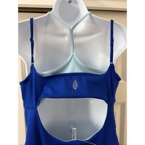 So sweet and sporty in the perfect femme style, this stunning tennis dress is featured in a layered design with peek-a-boo detail at square neckline, cutout detail at back, and classic A-line skirt overlay for a staple silhouette.
