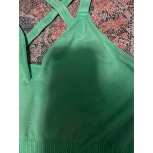Free People Movement size M/L Good Karma cropped top in Palm Beach (green). Minor wash wear overall very good used condition. Nylon/spandex