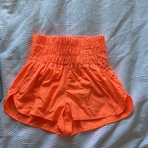 Speed up or slow down in these breezy, warm-up style running shorts, featuring a boldly smocked waistband with a high-rise silhouette and split hem.