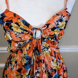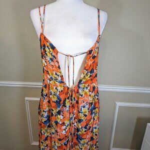 Style: Floral, Full Length, Flowy, Beach, Spring, Summer, Crisscross Strap Back, Keyhole Adjustable Front Tie, Pockets, Lined, Urban Outfitters, Boho, Bohemian, Cottagecore, Farmhouse, Grannycore, Shabby Chic