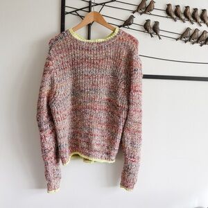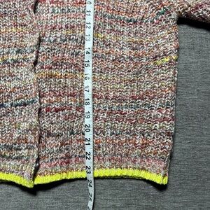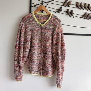 Free People Multicolor Chunky Knit Cardigan Neon Trim Slouchy Fit Size L Boho