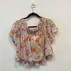 Free People Multicolor Floral Off-Shoulder Blouse
