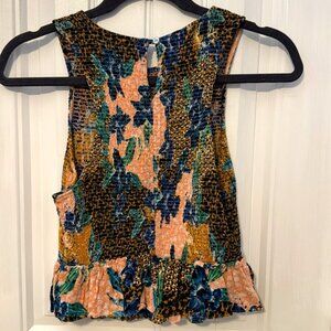 Chic Free People tank top with floral pattern. Features vibrant colors. Ideal for casual wear.