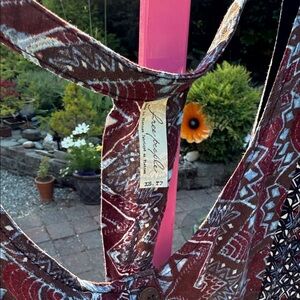 Stylish bohemian dress with a mix of patterns. Features a blend of red, blue, and white colors. With pockets non smoking hypoallergenic pet
