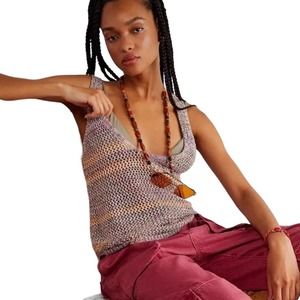 Stylish knit tank top by Free People. Features a multicolor pattern with an open back design. Perfect for casual wear.