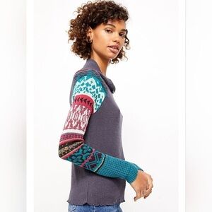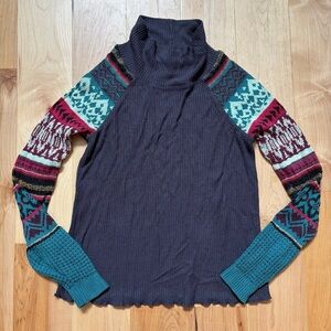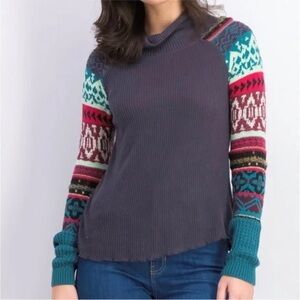Free People Multicolor Prism Thermal Cowl Neck Long Sleeve Sweater Top