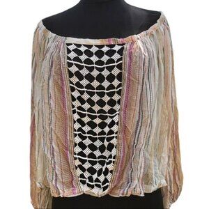 Free People One multicolor stripe crochet long sleeve top. Good condition. NO TRADES.