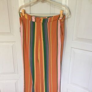 Vibrant Free People striped cropped pants with 2 front pockets. Features orange, pink, green, blue, and yellow. Perfect for a bold look.
