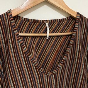 Free People Multicolor Striped V-Neck Blouse, Size XS