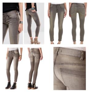 Free People Murray Wash Ankle Stretchy Skinny Jeans, 71% cotton, 21% polyester, 2% spandex, machine washable, 31" waist, 8.5" front rise, 13.5" back rise, 27" inseam, 11" leg opening all around, stretchy denim, fading, whiskering, five pockets, ankle length, taupe grayish color, belt loops, zip fly button front closure, measurements are approx. NO TRADES