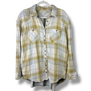 Free People Mustard Yellow Flannel Double Dip Button Down Oversized Shirt Medium
