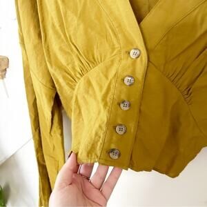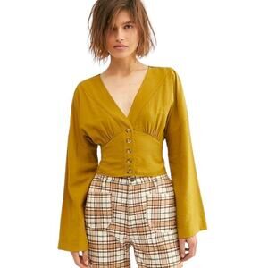 Free People Mustard Yellow Long Sleeve Smocked Forever Yours Cropped Top Size S