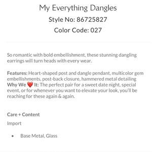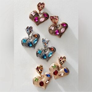 Make a statement with these Free People “My Everything Dangles” earrings! Featuring bold, heart-shaped hammered metal with multicolor glass gem embellishments, these earrings add a touch of vintage-glam meets modern boho to any outfit.