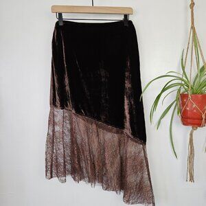 Free People My Lacey Asymmetrical Midi Skirt Lace Velvet Sz 6 Brown Chocolate