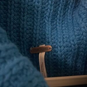 This is a beautiful cotton blend knit sweater by Free People NWT with a mock turtle neck and oversized look. Color is Mykonos Blue in the style Swim Too Deep. Simply gorgeous color and style. Size women’s medium.