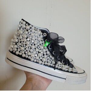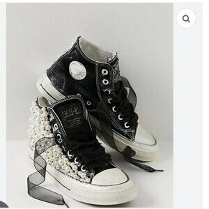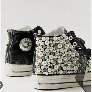 Free People NAN-Ku Crush High Top Sneakers Pearl Embellished Black 40 US 9