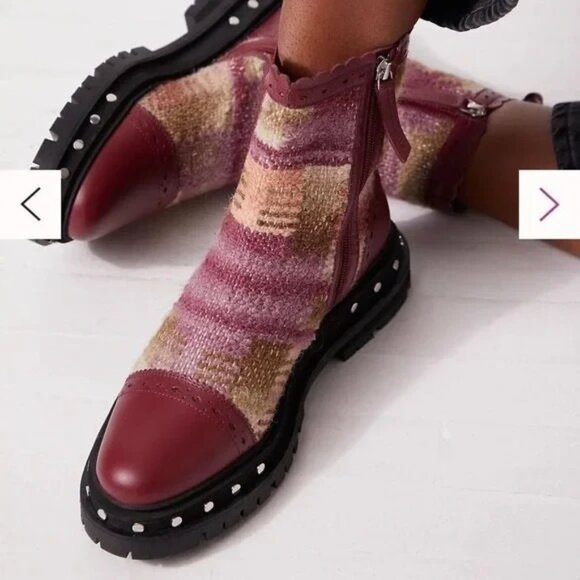 Free People NEW 10 Textile Atlas Chelsea Boot in Burgundy Red Kilim