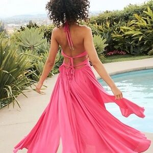 Free People NEW Lille Maxi Dress Sz Large Pink Gauze Flowy Beach Boho slit