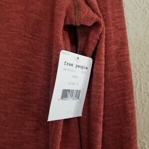 Free People NEW Split Back Red Turtleneck Relaxed Fit Knit High Low Tunic Top