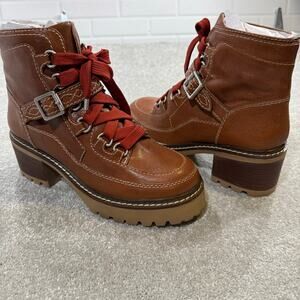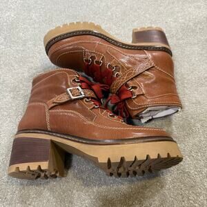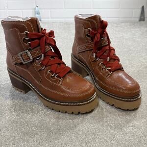 Free People NIB Jasper Hiker Ankle Boot Leather Chunky Heel Vtg Tan 10 Utility