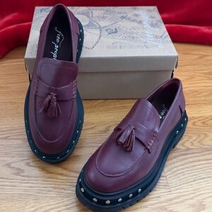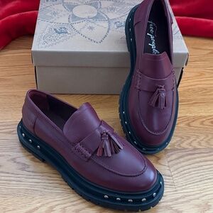 Free People Teagan Tassel Loafer in Mulberry. Brand new in box. Polished studs provide an eye-catching counterpoint to the twin tassels of this classic yet contemporary loafer. Size 8.5 Reviews said they fit true to size.