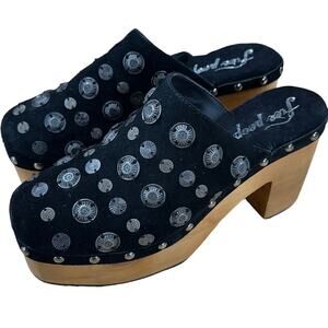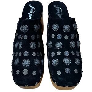 Free People Claudia Clogs Wooden Platform Black Suede Metal Studs Women's Sz 40