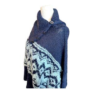 Free People NWOT Revolve Fair Isle Split Neck Wool Blend Sweater Navy/Light Blue