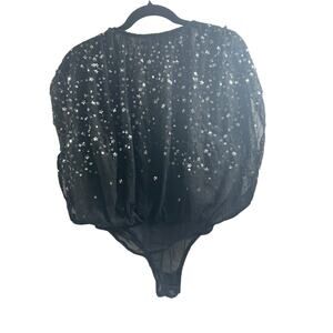 Free People NWOT Women's Black Bodysuit Lace Sequins Size X-Small