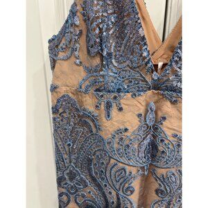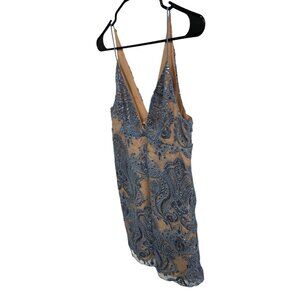 Free People NWT Blue Nude Sequined Paisley Lace Slip Dress Sz 0